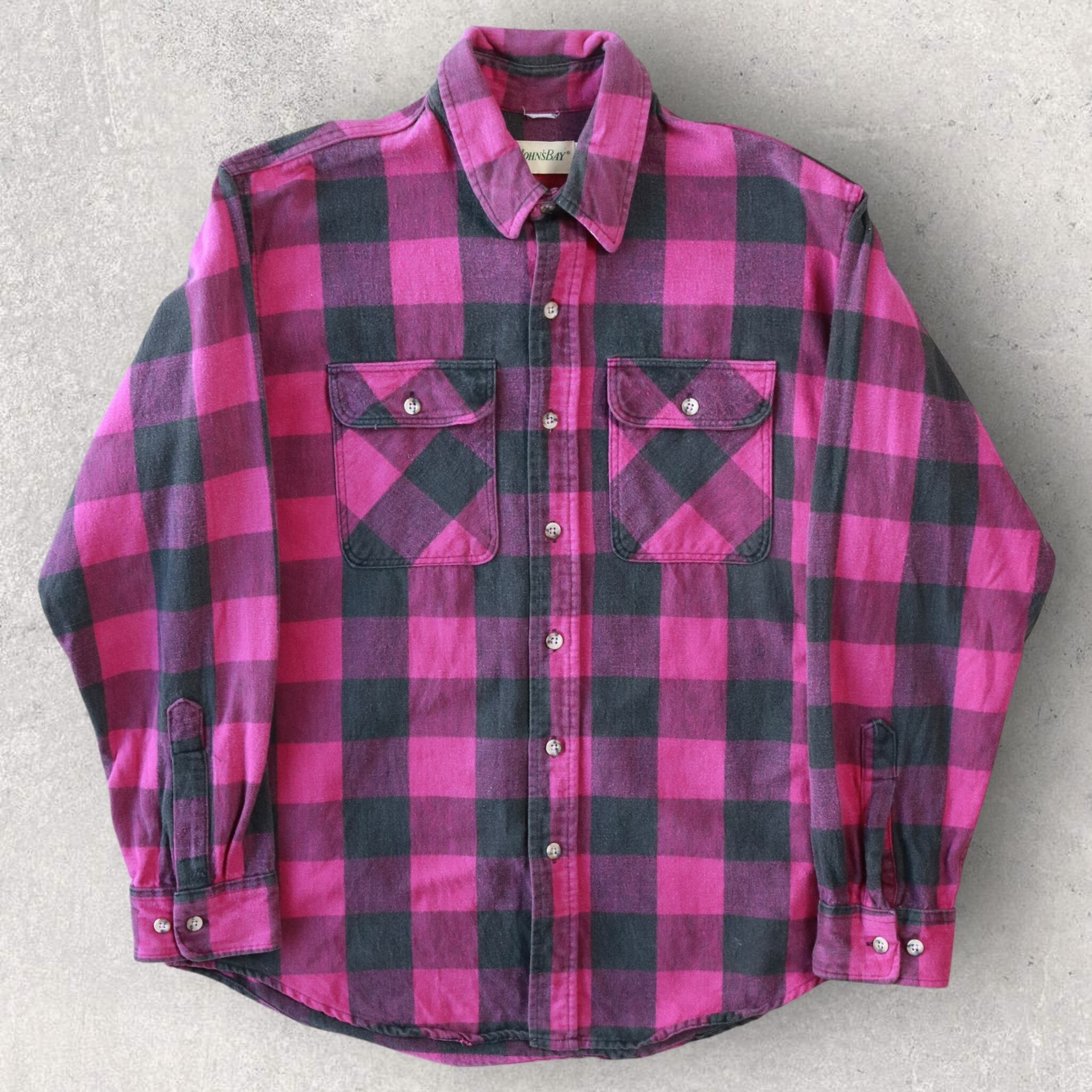 ◎ st.johns bay "purple" block check frannel shirt made in usa 90s