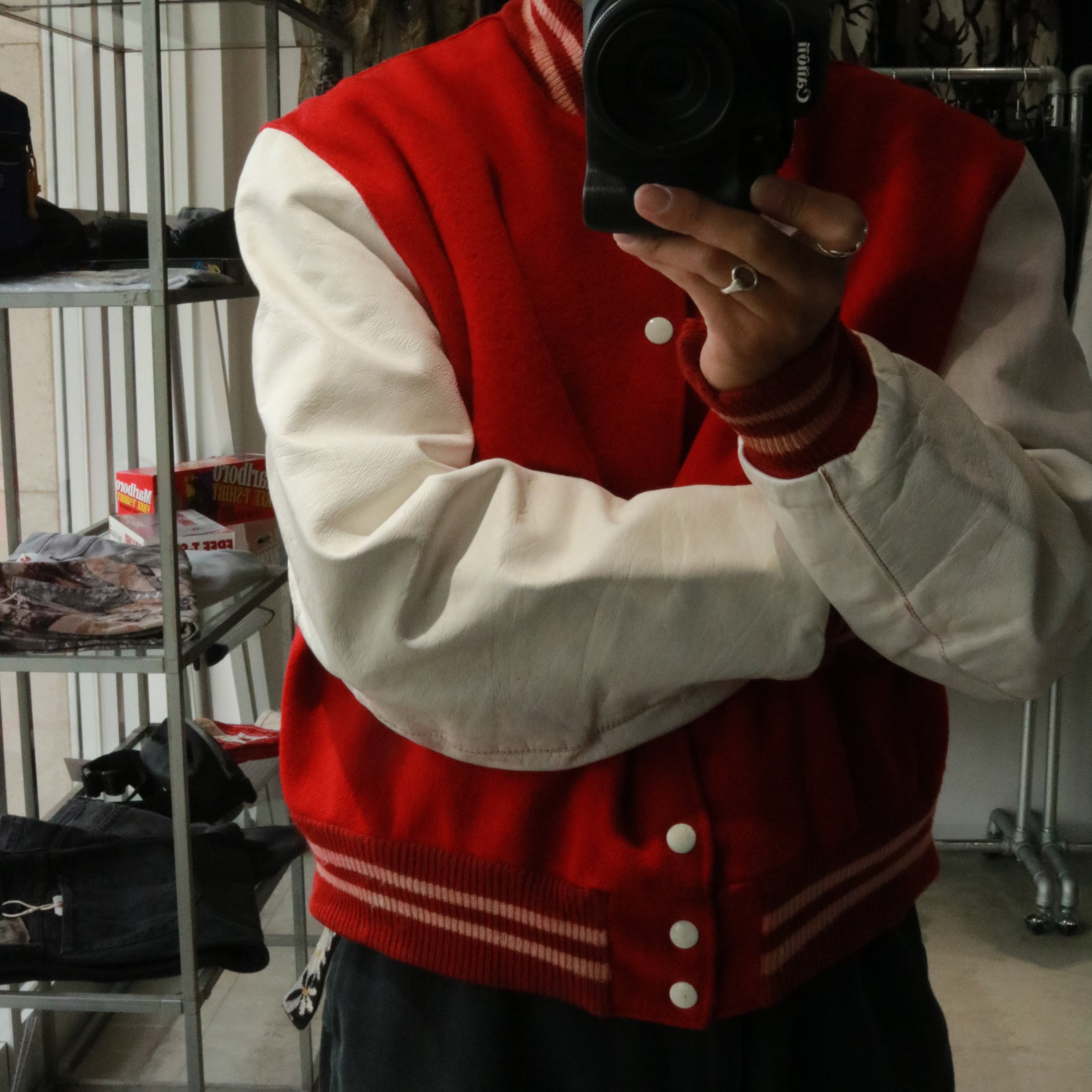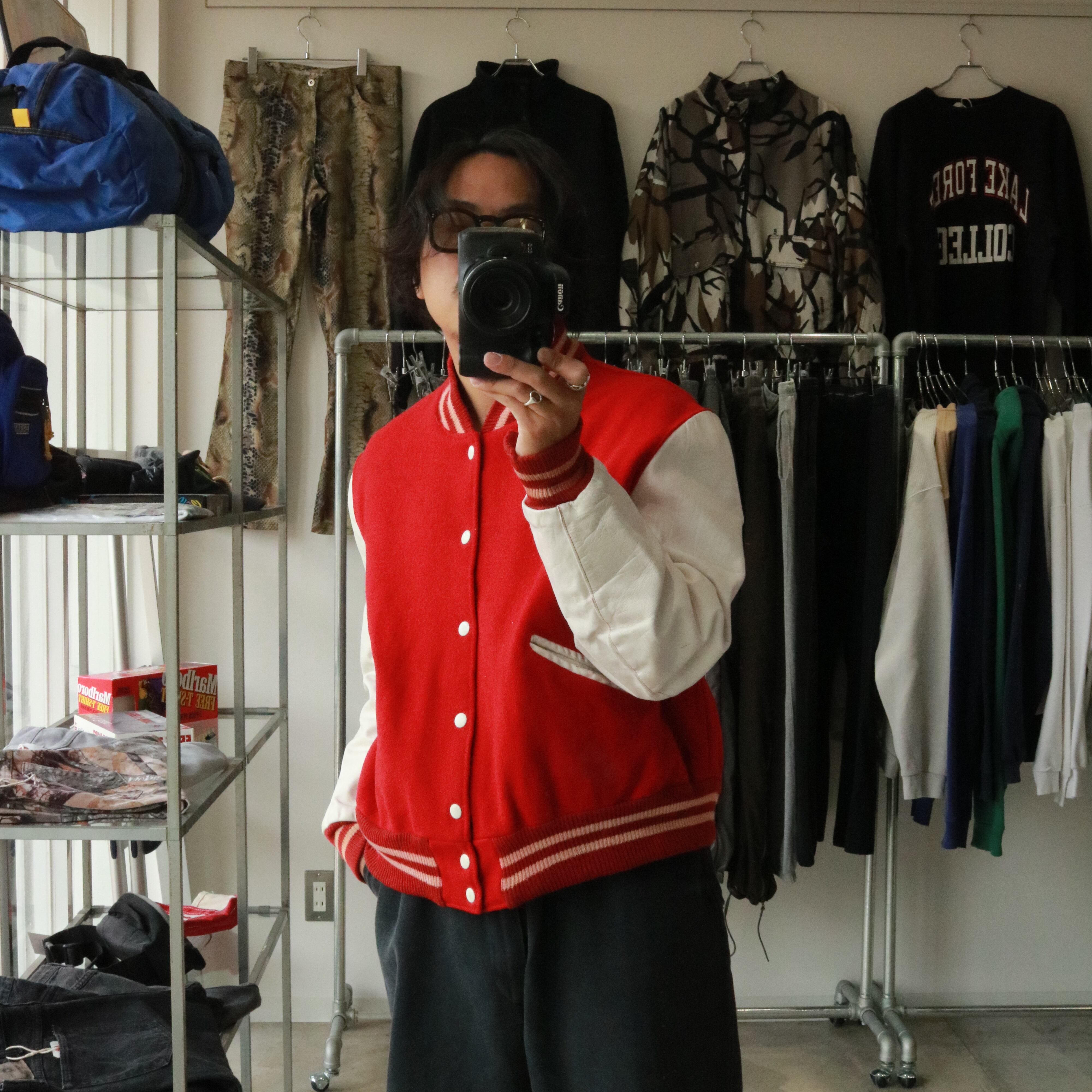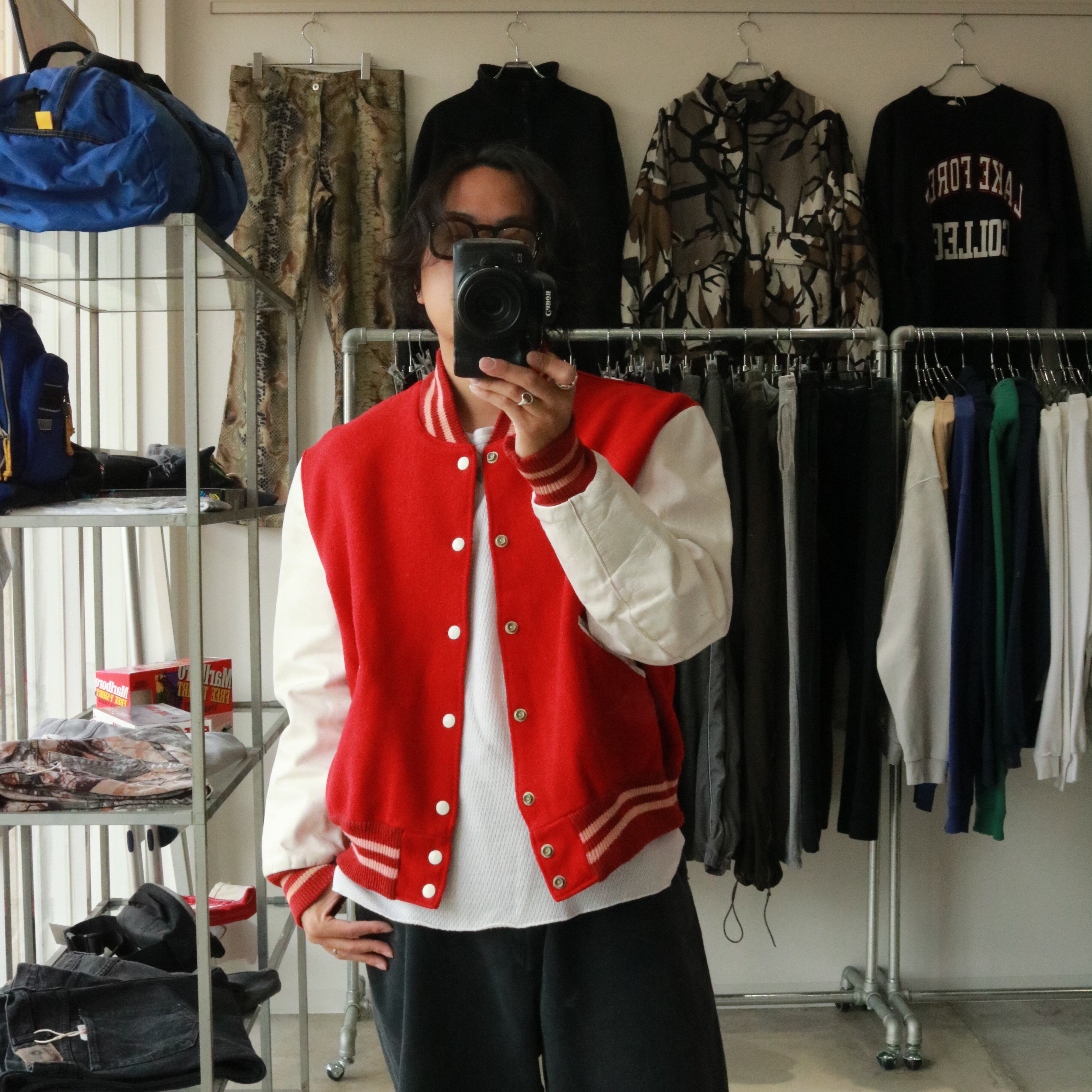 "wool × leather" stadium jacket 80s
