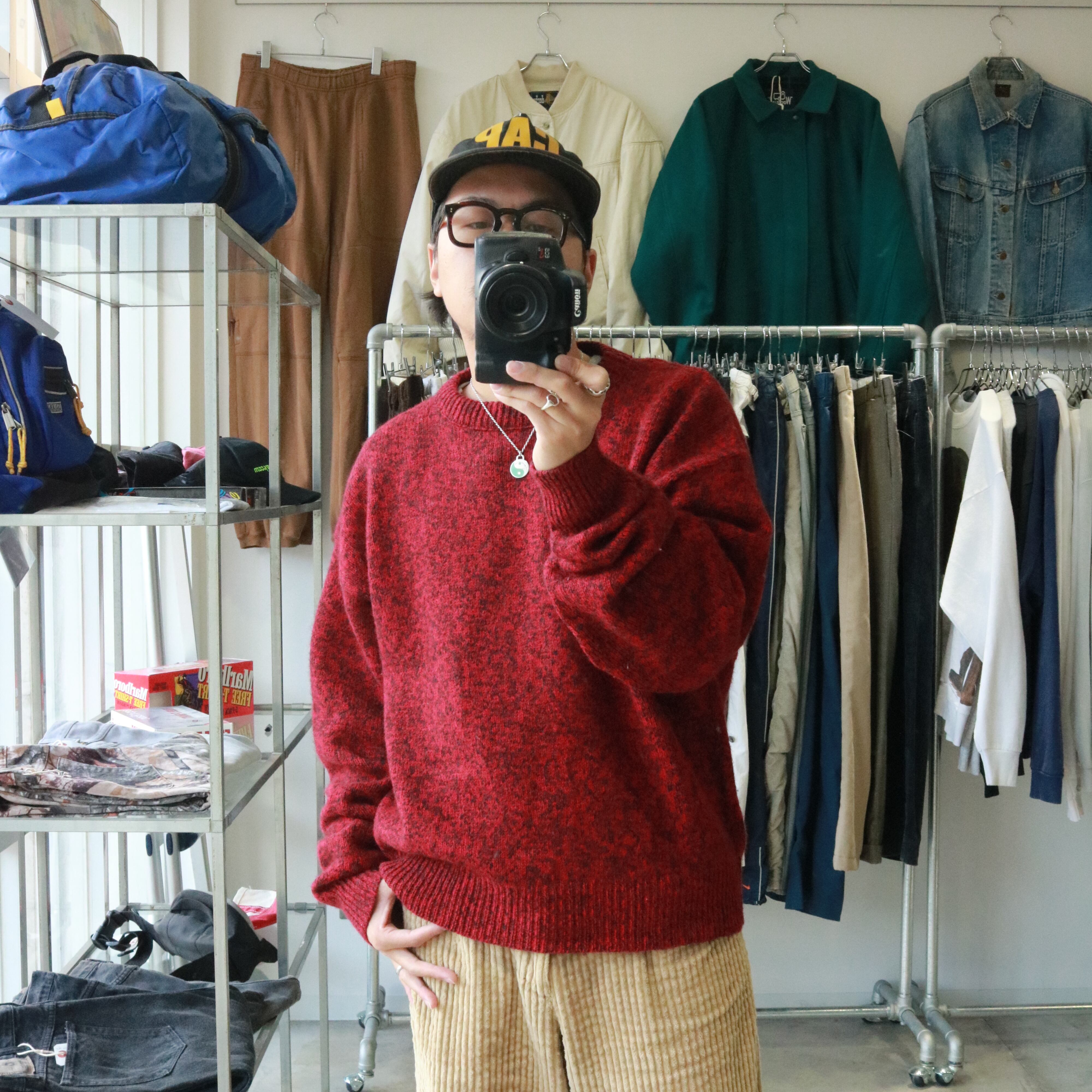 ◎ eddie bauer "red × black" wool knit 80s