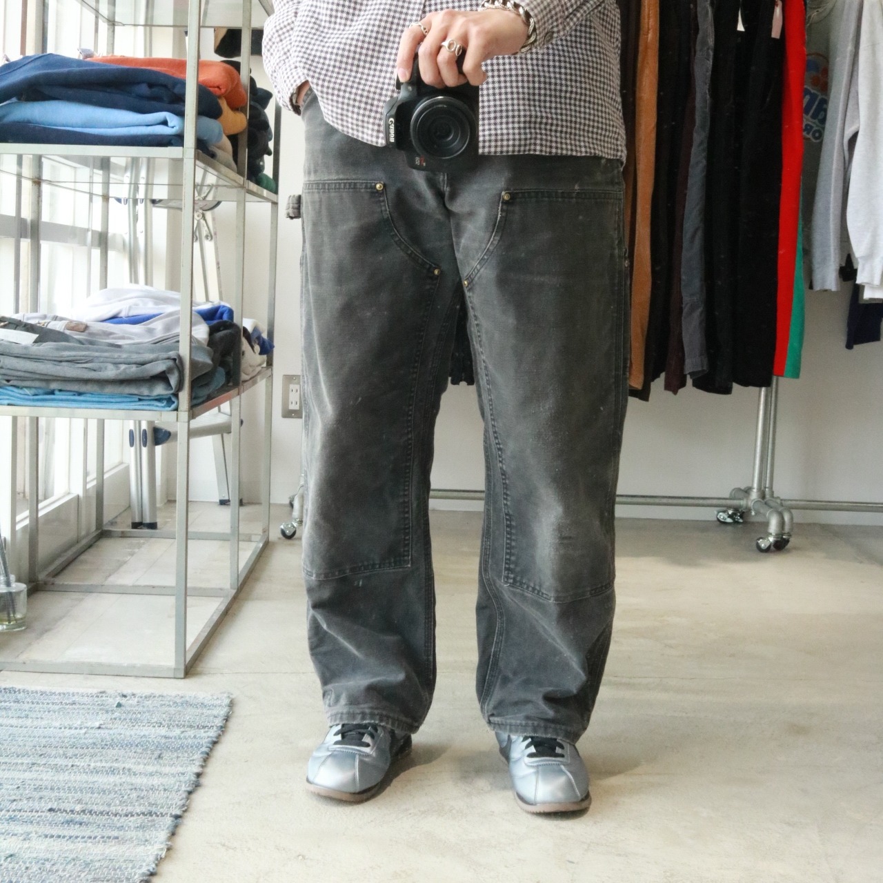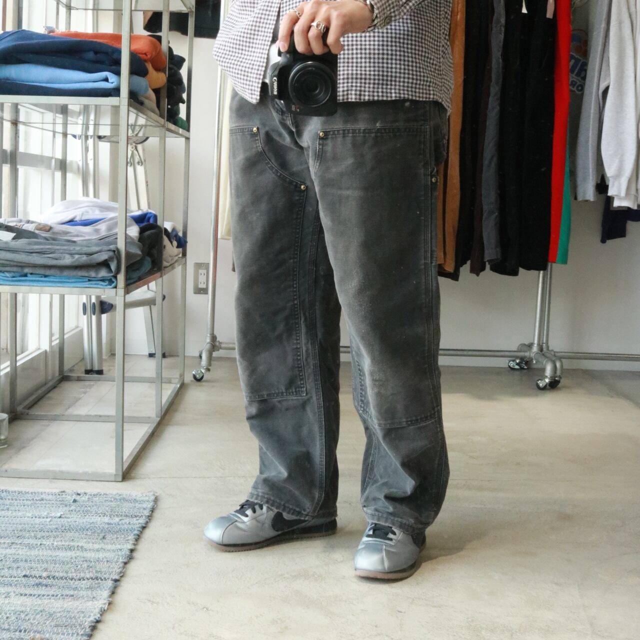 ◎ carhartt "great fade" black double knee pants made in usa 90s