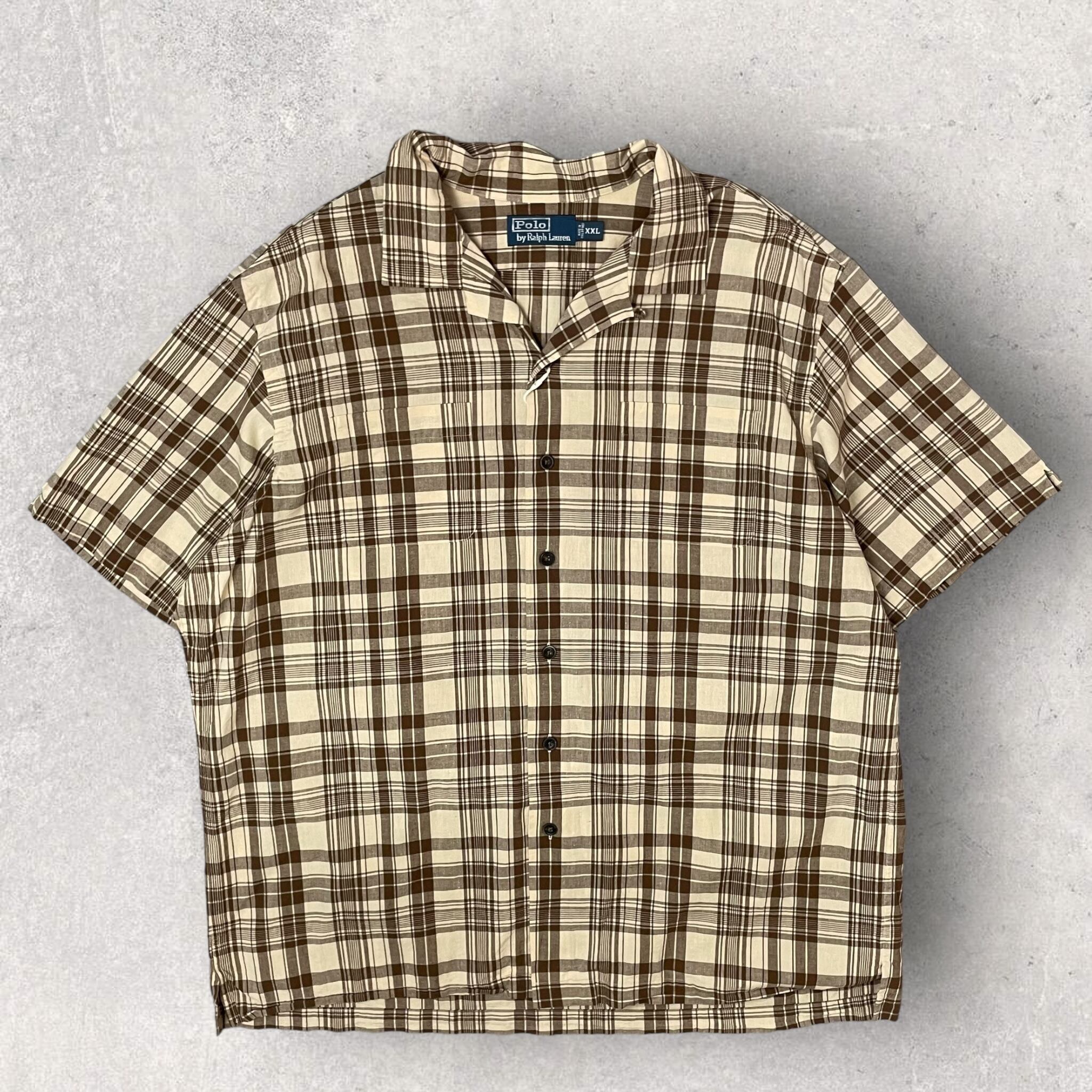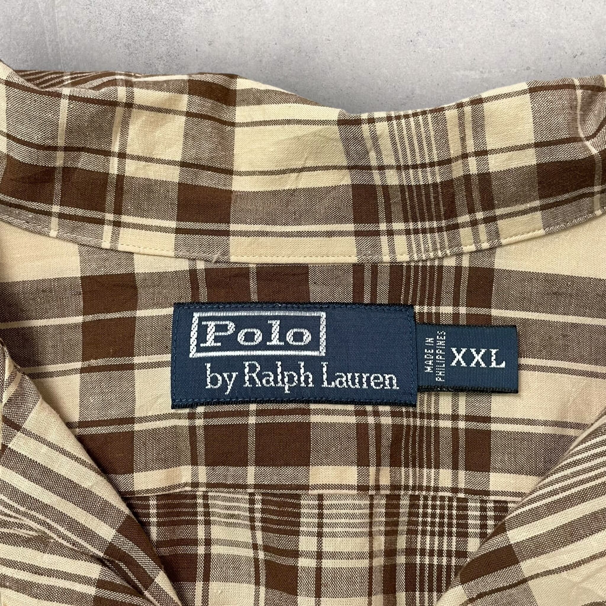 polo by ralph lauren cotton × linen "brown check" shirt 90s